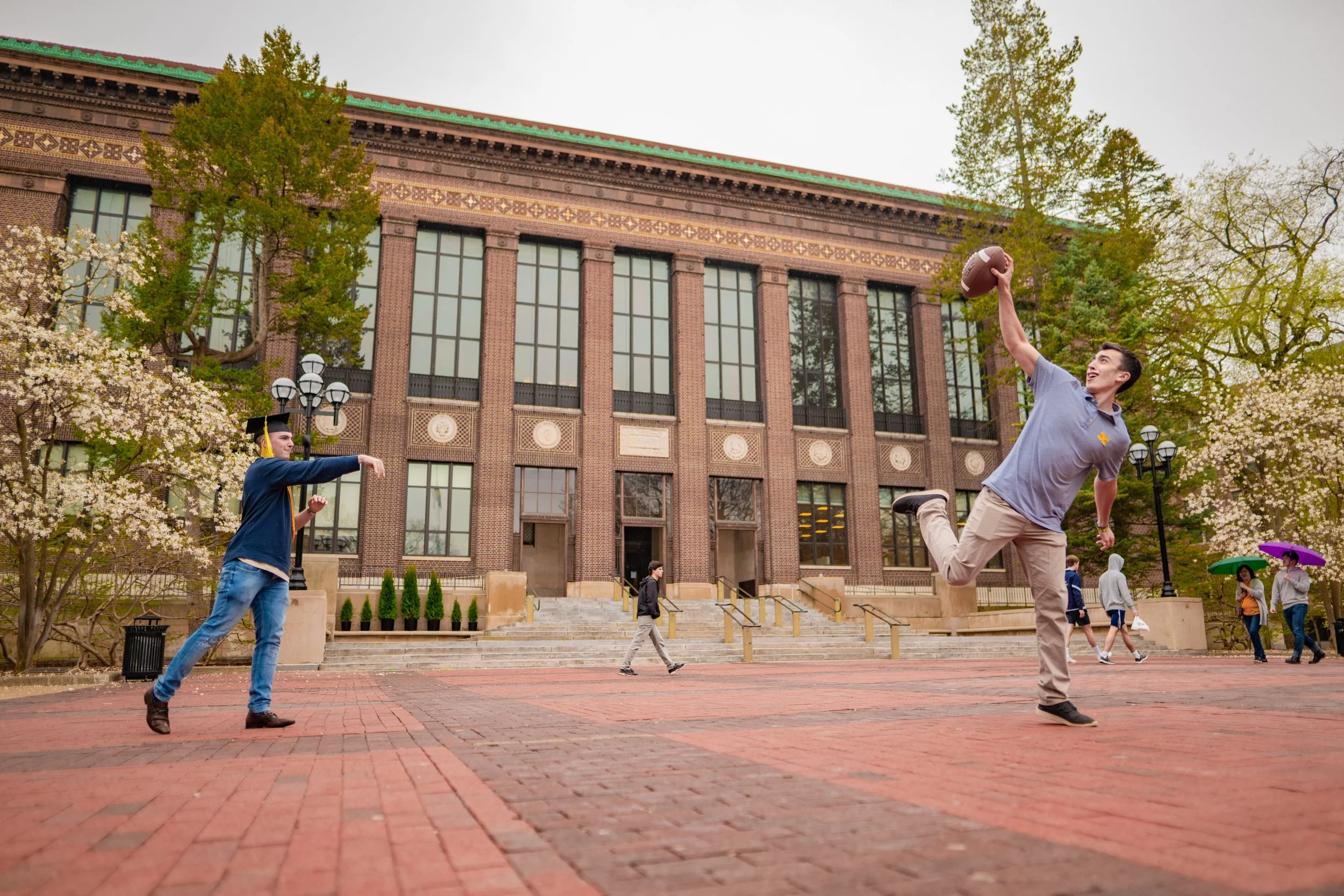 The most important backdrop when it comes to capturing your graduation pictures in Ann Arbor is any of the stunning landmarks we’ve grown to love as Wolverines. Whether it's the iconic Law Quad, steps outside the Ross School of Business, the dorm where your freshman year unfolded, the house where you spent your senior year, or even the heavenly gates of the Big House, each spot offers a unique backdrop that encapsulates your college memories.